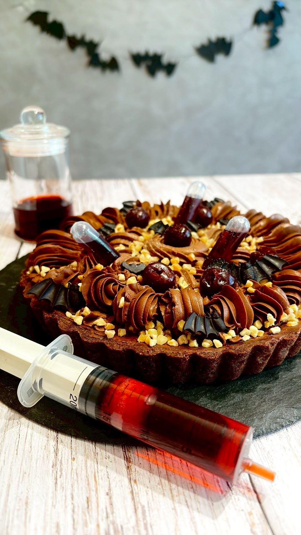 麵粉,可可粉,杏仁粉,奶油,糖,蛋液,巧克力,酒漬櫻桃,吉利丁片,牛奶,動鮮,杏仁角等