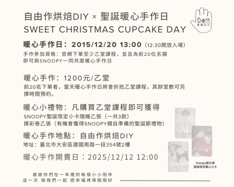 暖心手作日:2015/12/20 13:00(12:30開放入場)