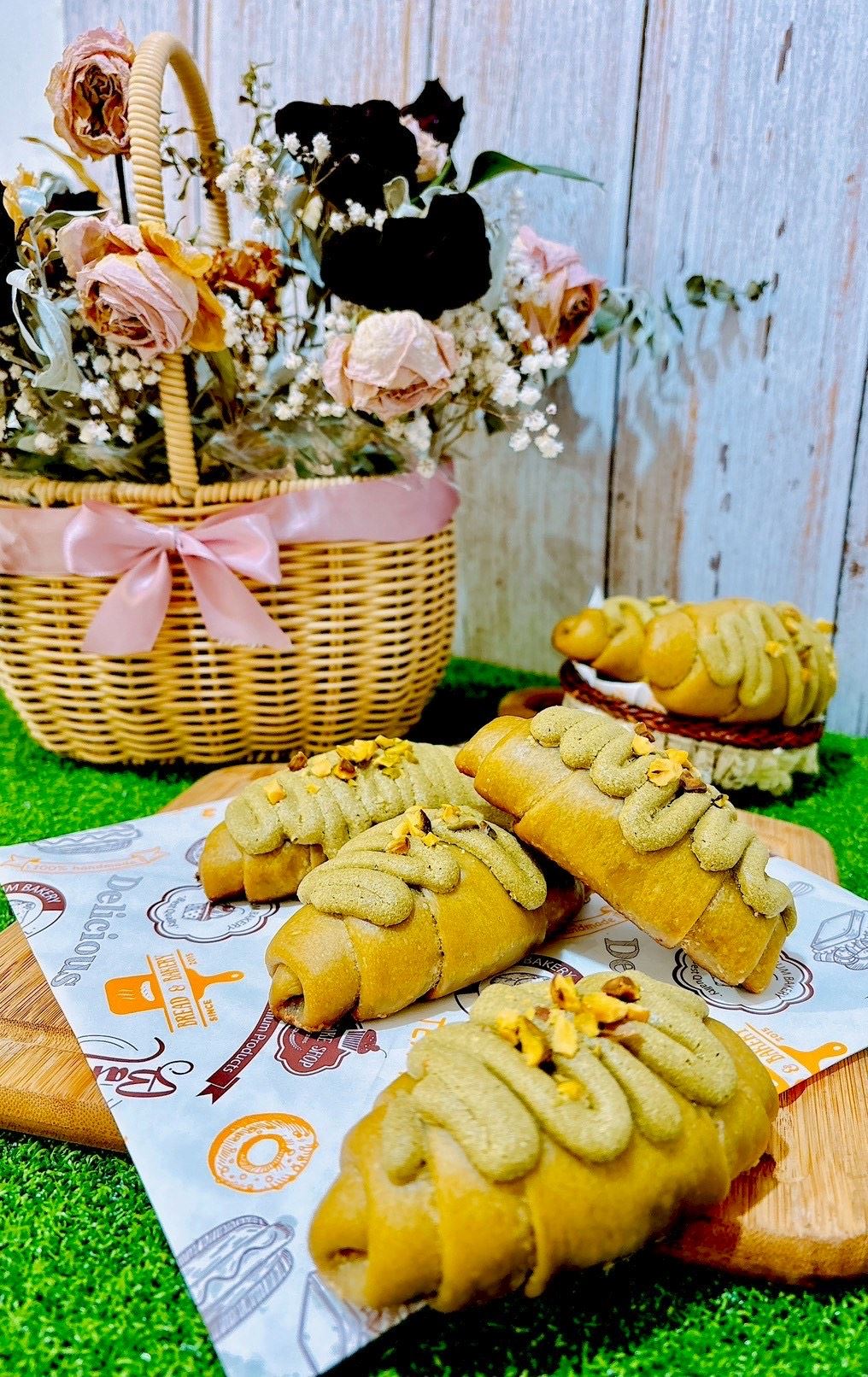 麵粉,糖,鹽,奶油,植物油,蛋液,水,開心果醬,開心果本果,食用色素等。