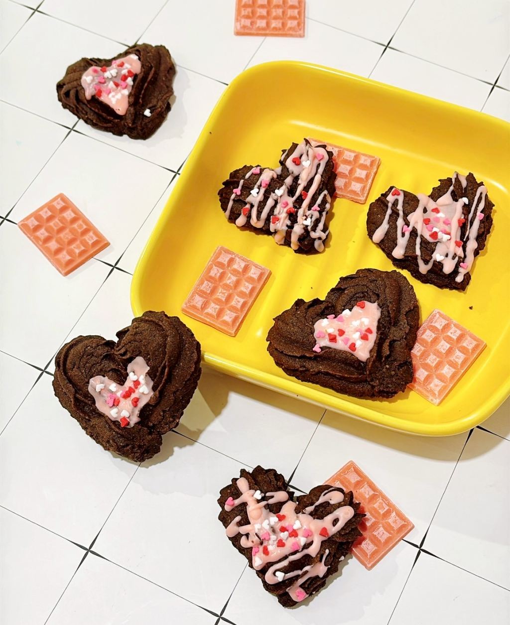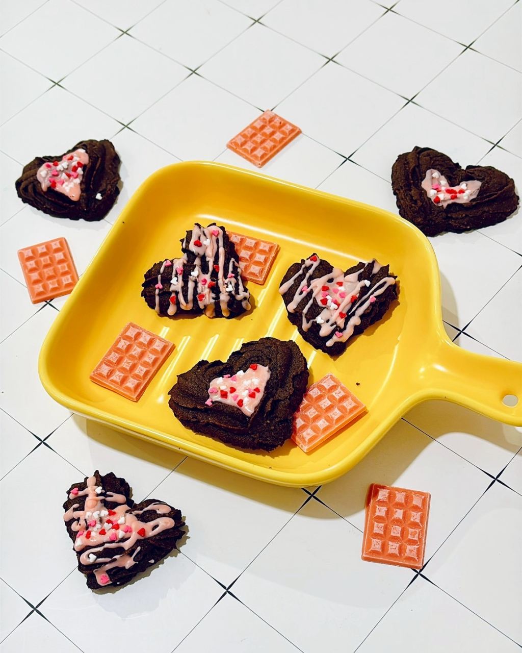 奶油、低粉、牛奶、杏仁粉、蛋、巧克力、裝飾糖片等。