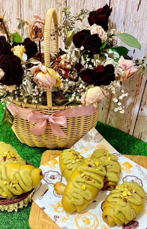 麵粉,糖,鹽,奶油,植物油,蛋液,水,開心果醬,開心果本果,食用色素等。
